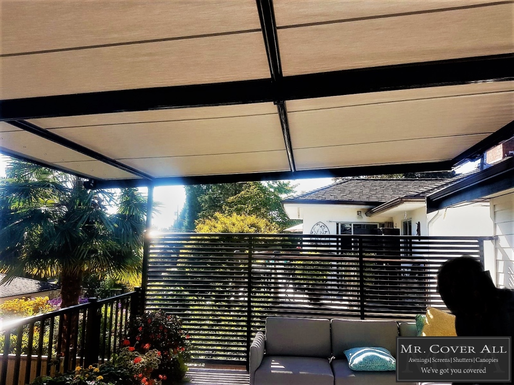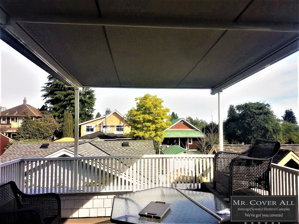 We will help you create your dream patio with our colourful selection of deck covers and canopies, a cozy balcony with our wind and waterproof awnings and roll screens, secure storefronts with our security shutters, or seamless sliding glass enclosures. Don’t get caught in the rain! Enjoy your outdoor spaces all year round with deck covers and a little help from Mr. Cover All.